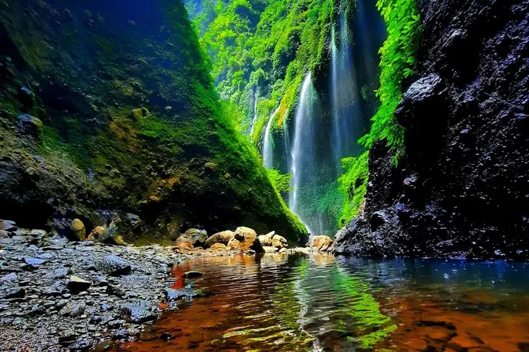 - Air Terjun Madakaripura, Jawa Timur: Tersembunyi di dalam ngarai yang sempit, air terjun ini memiliki ketinggian sekitar 200 meter dan merupakan air terjun tertinggi kedua di Jawa Timur.