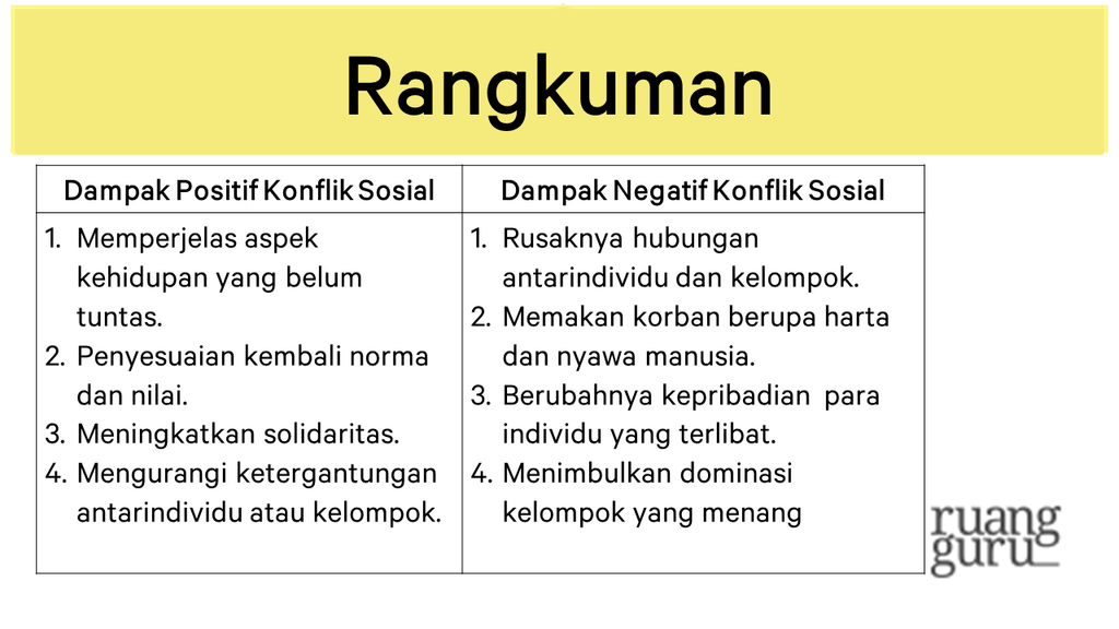 • Kerusakan hubungan sosial: Konflik dapat memecah belah masyarakat, merusak hubungan antar kelompok etnis, agama, atau politik.