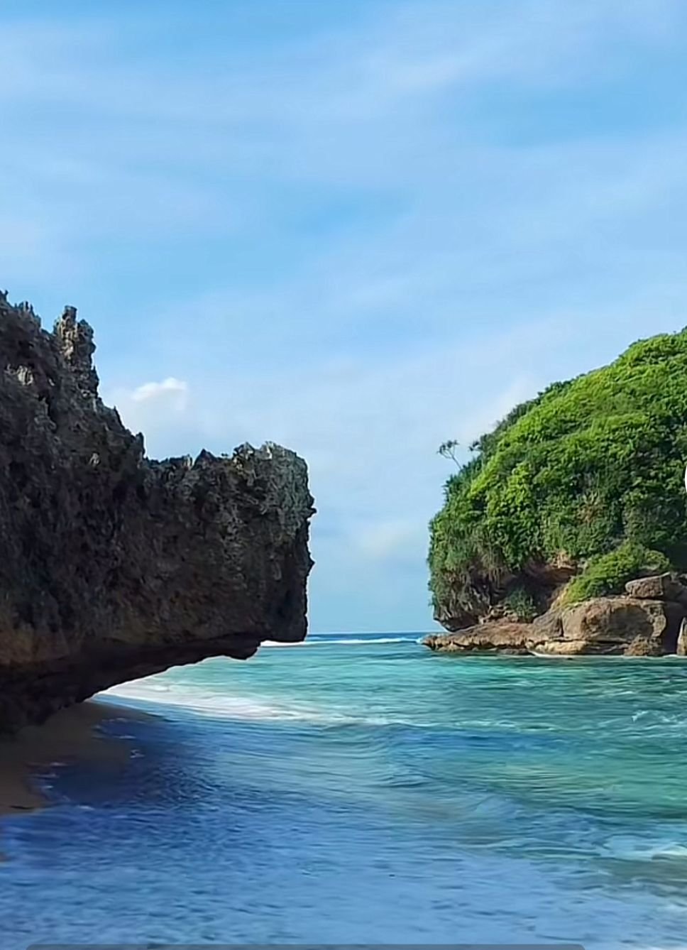 - Keunikan: Berbeda dengan pantai-pantai lain di Yogyakarta yang memiliki pasir hitam, Pantai Wediombo memiliki pasir putih yang bersih. Pantai ini dikelilingi oleh tebing-tebing karang yang menjulang tinggi, menciptakan laguna alami yang aman untuk berenang dan snorkeling.